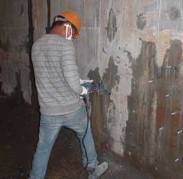 1、查找裂缝并清理裂缝表面污物,找准渗漏水源。